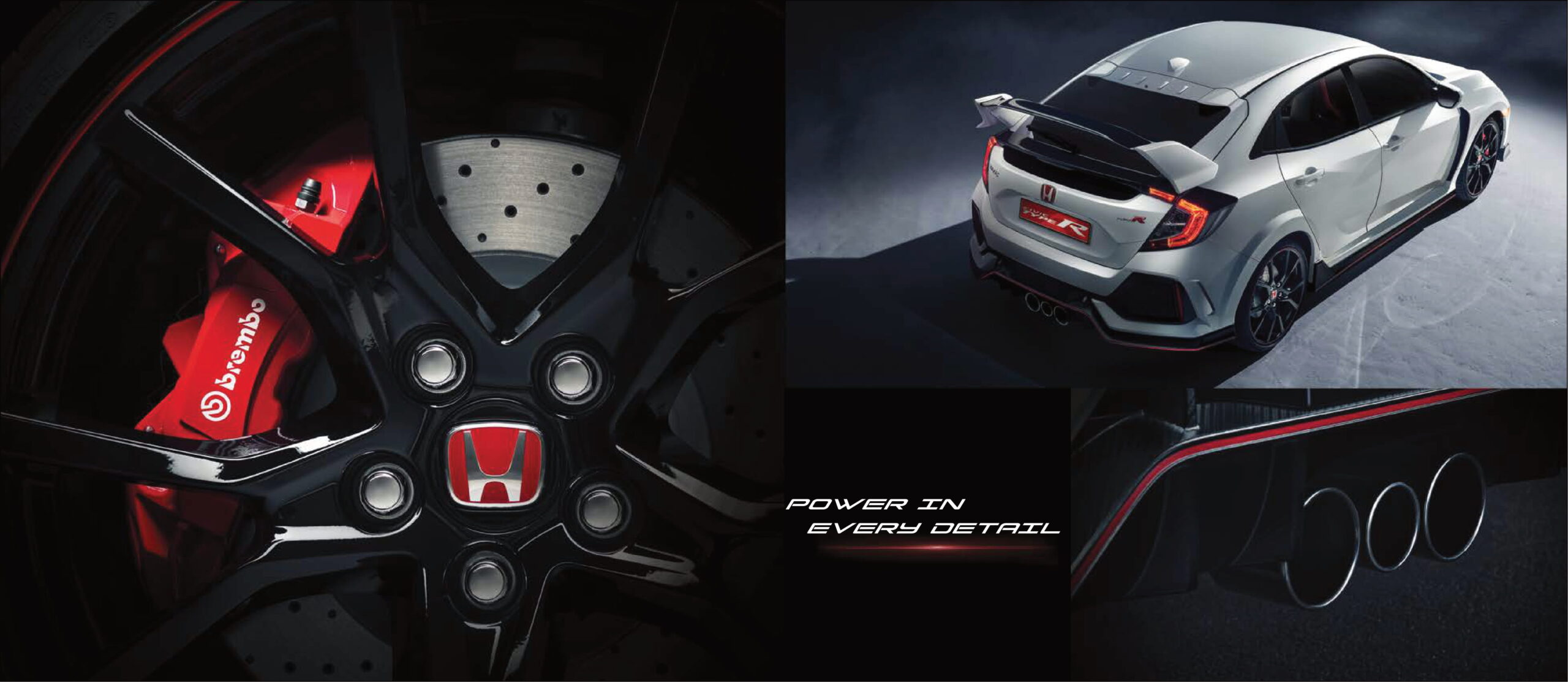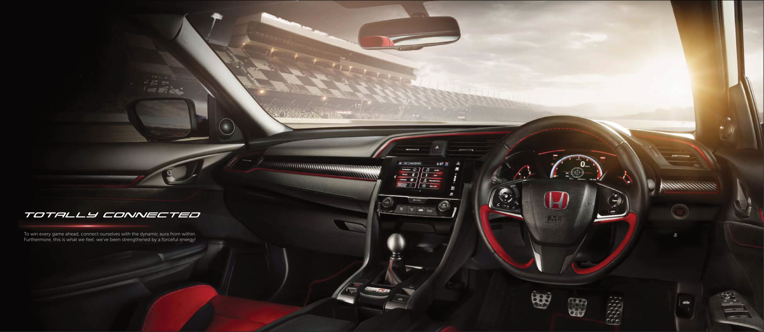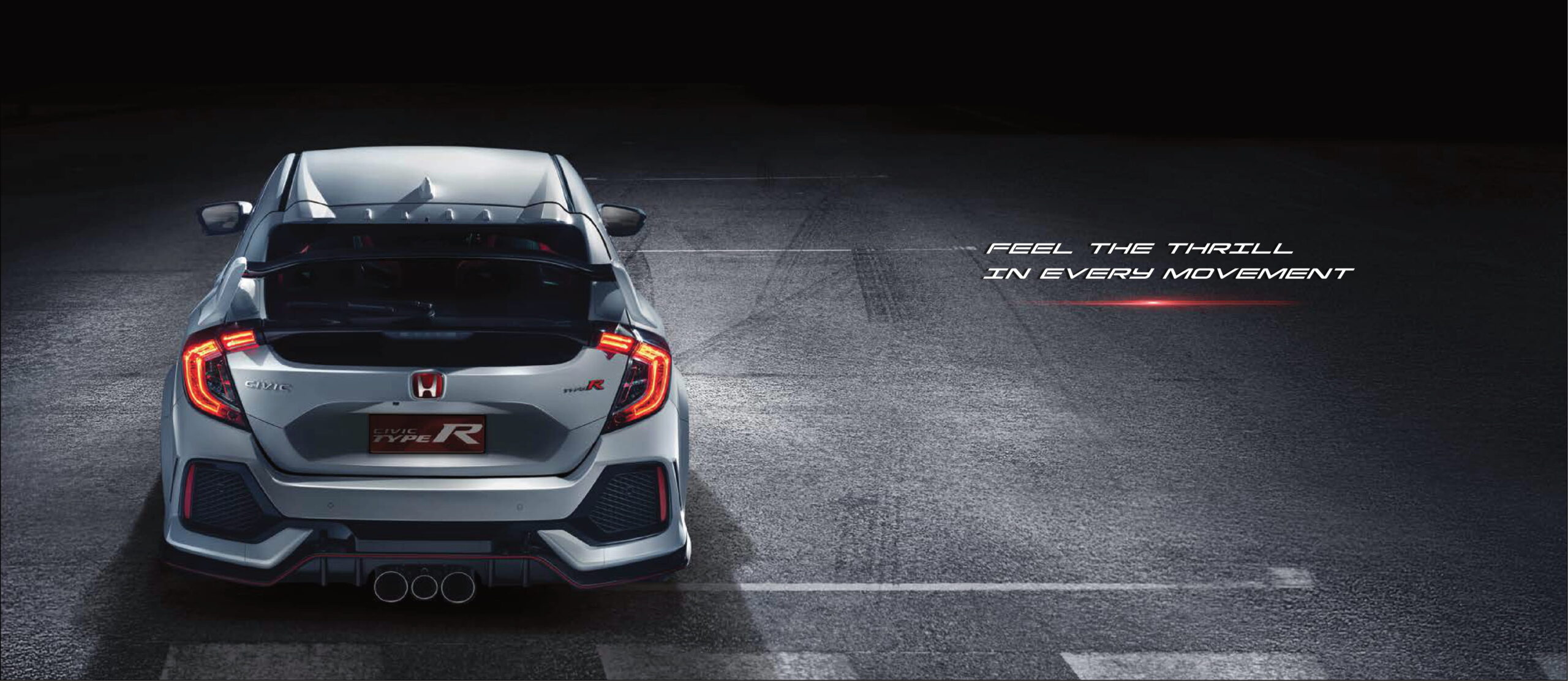 New Honda Civic Type R terbaru hadir dengan desain front bumper and rear bumper baru, lengkap dengan diffuser, rear wing spoiler, dan vortex generator. Secara keseluruhan, desain eksterior mobil ini sangat keren. Apalagi ada tambahan side skirt, carbon effect fiber serta underbody spoiler kit yang menambahkan kesan sporty plus full LED headlights dan LED daytime running lights yang memancarkan aura modern. Pelek alloy berukuran 20 inci dengan agresif dengan fitur tire pressure monitoring system untuk memonitor tekanan angin yang dapat terlihat pada panel instrumen.